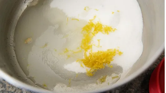 Step1In 2-quart saucepan, heat, granulated sugar, water, lemon peel and lemon juice to boiling. Boil until sugar is dissolved. Remove from heat; cool lemon syrup completely.