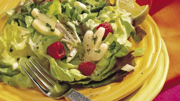- 4 cups bite-size pieces spring salad greens