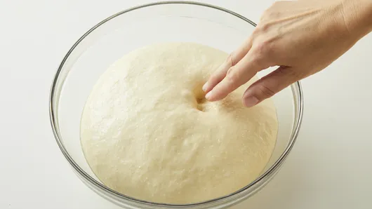 Spray large bowl with cooking spray. Place dough in bowl, turning dough to grease all sides. Cover bowl loosely with plastic wrap; let rise in warm place about 1 hour or until dough has doubled in size. Dough is ready if indentation remains when you press your fingertips about 1/2 inch into dough.