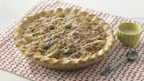 Step4Bake 15 minutes. Cover top of pie with foil; bake 10 to 15 minutes longer or until golden brown. Cool 2 to 3 hours before serving. Drizzle top of pie or individual servings with Caramel Topping.