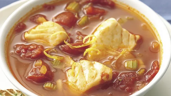 Looking for a hearty dinner? Then check out this tasty fish and veggie soup made using Progresso® chicken broth, frozen vegetables.