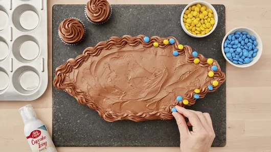 var configuration = {"title":"Football Cupcake Pull-Aparts","introduction":"Team up cupcakes to create a winning play with a football party cake.","servingSize":"1 Cupcake (Cake and Frosting Only)","image":{"small":{"media":"(min-width: 0px)","src":"https://mojo.generalmills.com/api/public/content/iNV7k39eQ1OcfCi3D2I2-g_webp_base.webp?v=2a48fede\u0026t=e724eca7b3c24a8aaa6e089ed9e611fd"},"medium":{"media":"(min-width: 500px)","src":"https://mojo.generalmills.com/api/public/content/iNV7k39eQ1OcfCi3D2I2-g_webp_base.webp?v=2a48fede\u0026t=191ddcab8d1c415fa10fa00a14351227"},"large":{"media":"(min-width: 767px)","src":"https://mojo.generalmills.com/api/public/content/iNV7k39eQ1OcfCi3D2I2-g_webp_base.webp?v=2a48fede\u0026t=191ddcab8d1c415fa10fa00a14351227"},"alt":"Football Cupcake Pull-Aparts"},"contributor":{"label":"By","name":"Betty Crocker Kitchens","profileUrl":"/about-us","displayDate":{"label":"Updated","date":"Apr 5, 2025"}},"ingredientGroups":[{"ingredients":[{"quantity":"1","description":"box Betty Crocker™ Super Moist™ Devil\u0027s Food Cake Mix","productLink":"/products/betty-crocker-baking-and-cake-mixes/devils-food"},{"quantity":"","description":"Water, vegetable oil and eggs called for on cake mix box"},{"quantity":"2","description":"tubs (16 oz) Betty Crocker™ Rich \u0026 Creamy Chocolate Frosting"},{"quantity":"1/2","description":"cup powdered sugar"},{"quantity":"1/2","description":"cup M\u0026M\u0027s® Candy-Coated Milk Chocolate Candies "},{"quantity":"1","description":"can (8.4 oz) Betty Crocker™ White Cupcake Icing "}]}],"steps":[{"description":"Heat oven to 350°F (325°F for dark or nonstick pans). Place paper baking cup in each of 24 regular-size muffin cups."},{"description":"Make and bake cake mix as directed on box for 24 cupcakes. Cool in pans 10 minutes; remove from pans to cooling rack. Cool completely, about 30 minutes."},{"description":"\u003cp\u003eIn large bowl, beat frosting and powdered sugar with electric mixer on medium speed until well blended and smooth. Spoon frosting into decorating bag with medium star tip.\u003c/p\u003e"},{"description":"\u003cp\u003eUsing a large serving tray or cookie sheet lined with foil, arrange 16 of the 24 cupcakes in a football shape: place 3 rows of 3 cupcakes, then add 2 cupcakes on each side and 1 cupcake at each end. Gently push the cupcakes together so they’re close and form the football shape. Remove paper baking cup from final cupcake, cut into quarters. Use the quarters to fill the remaining spaces in the center of the football shape.\u003c/p\u003e","stepShotImageUrl":"//mojo.generalmills.com/api/public/content/ygPxcTfxT-WXzLi7c2xnpQ_webp_base.webp?v=55481374\u0026t=51a43a57af4046789e5a7f20567b1195"},{"description":"\u003cp\u003ePipe a thick border around the top of the football shape, then continue piping along the shape toward the center (the lines don\u0027t need to connect; this will happen when you spread the frosting). Use an icing spatula to spread the frosting, covering the cupcakes.\u003c/p\u003e","stepShotImageUrl":"//mojo.generalmills.com/api/public/content/DxtpVtczSQS2k3QLzTpYOA_webp_base.webp?v=3f712af7\u0026t=51a43a57af4046789e5a7f20567b1195"},{"description":"\u003cp\u003ePipe a decorative border of frosting around edge of football. Sprinkle chocolate candies on the border. Pipe laces with white icing.\u003c/p\u003e","stepShotImageUrl":"//mojo.generalmills.com/api/public/content/mXfyHHcZT7KM6CsfWApNGA_webp_base.webp?v=86faa25a\u0026t=51a43a57af4046789e5a7f20567b1195"},{"description":"\u003cp\u003eFrost and decorate remaining cupcakes as desired, and serve alongside the football. Store loosely covered at room temperature.\u003c/p\u003e"}],"tips":[{"title":"","description":"\u003cp\u003eGet in the team spirit! Use candy-coated chocolate candies that match your team colors.\u003c/p\u003e","category":"Presentation/Garnish","tipShots":[]},{"title":"","description":"\u003cp\u003eIf you have only one pan and a recipe calls for more cupcakes than your pan will make, cover and refrigerate the rest of the batter while baking the first batch. Cool the pan about 15 minutes, then bake the rest of the batter, adding 1 to 2 minutes to the bake time.\u003c/p\u003e","category":"Recipe/Ingredient Facts","tipShots":[]},{"title":"","description":"\u003cp\u003eSwap in Betty Crocker™ Super Moist™ Yellow Cake Mix for Devil’s Food Cake in this recipe. Be sure to follow the directions on the box for the amounts of water, vegetable oil and eggs to make 22 cupcakes.\u003c/p\u003e","category":"Substitution","tipShots":[]},{"title":"","description":"\u003cp\u003eTo help hold the cupcakes in place, if needed, use your icing spatula to dab a little frosting on bottom of each cupcake before placing on serving tray.\u003c/p\u003e","category":"Techniques","tipShots":[]},{"title":"","description":"\u003cp\u003eKitchen Tested: 4/2025.\u003c/p\u003e","category":"Kitchen Tested","tipShots":[]}],"kitchenTips":[{"title":"","description":"\u003cp\u003eGet in the team spirit! Use candy-coated chocolate candies that match your team colors.\u003c/p\u003e","category":"Presentation/Garnish","tipShots":[]},{"title":"","description":"\u003cp\u003eIf you have only one pan and a recipe calls for more cupcakes than your pan will make, cover and refrigerate the rest of the batter while baking the first batch. Cool the pan about 15 minutes, then bake the rest of the batter, adding 1 to 2 minutes to the bake time.\u003c/p\u003e","category":"Recipe/Ingredient Facts","tipShots":[]},{"title":"","description":"\u003cp\u003eSwap in Betty Crocker™ Super Moist™ Yellow Cake Mix for Devil’s Food Cake in this recipe. Be sure to follow the directions on the box for the amounts of water, vegetable oil and eggs to make 22 cupcakes.\u003c/p\u003e","category":"Substitution","tipShots":[]},{"title":"","description":"\u003cp\u003eTo help hold the cupcakes in place, if needed, use your icing spatula to dab a little frosting on bottom of each cupcake be