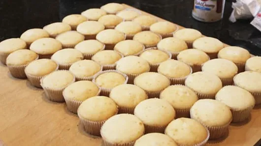 Step2Bake 20 to 25 minutes or until toothpick inserted in center comes out clean. Cool in pans 10 minutes; remove from pans to cooling racks. Cool completely, about 30 minutes. While 24 cupcakes are baking, make batter with remaining cake mix, water, oil and eggs. Repeat baking and cooling to make 24 more cupcakes.