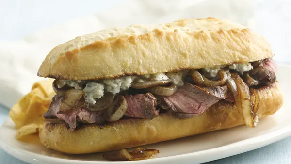 Serve these French-style sandwiches filled with roast beef, onion and cheese ready in 25 minutes - perfect for a dinner.