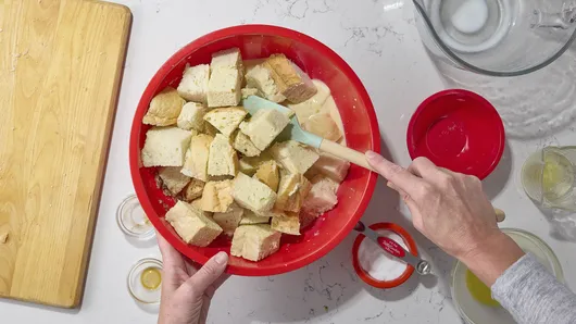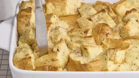Soft bread that’s also squishy will fall apart and get mushy in this dish. Also, avoid very chewy breads such as ciabatta or anything with a hard crust, as it will be difficult for the custard to soften these enough in the oven. The result is a French toast casserole with an undesirable texture.