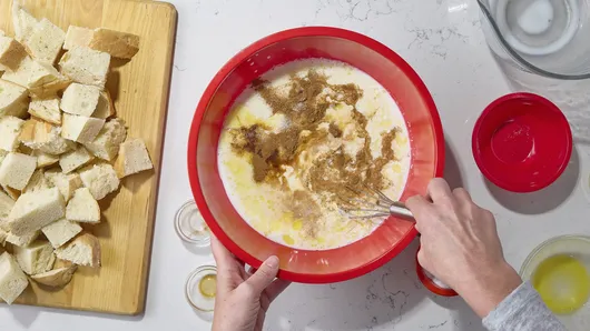 While you can put this French toast casserole together quickly, you may want to prepare some of the elements in advance to take the stress out of your morning. All it takes is three easy steps. First, cut the bread into cubes the day before and keep in a food-safe plastic bag or container. Second, combine the milk, melted butter, eggs, sugar, vanilla, cinnamon, and salt according to the directions. Store, covered, in the refrigerator up to 24 hours. Third, proceed with making the French toast casserole recipe as directed when ready to eat.