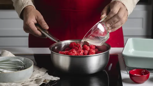 In 2-quart saucepan, mix 1/2 cup sugar and cornstarch. Stir in raspberries, water and lemon juice.