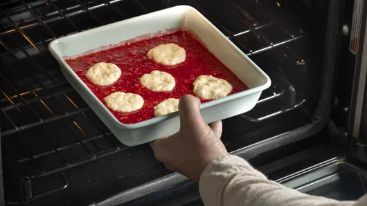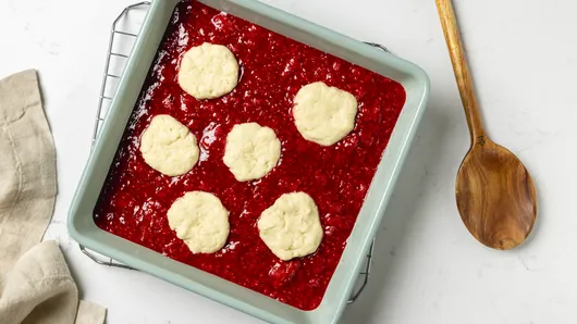 Drop dough by 6 spoonfuls onto hot berry mixture.