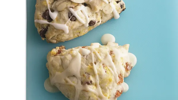 Coffee shop sweet scones strut fresh orange flavor and chewy oats.