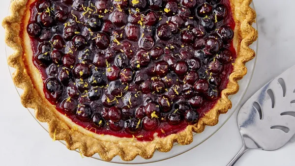 Bake this delicious cheesecake dessert - topped with fresh strawberries.
