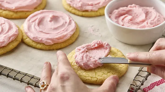 These cookies get a generous amount of frosting, for an indulgent finish. After frosting, you can even decorate the cookies with sprinkles before putting them in the refrigerator to allow the frosting to set.