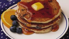 Kick off the Fourth of July with our patriotic, red-white-and-blue pancakes festooned with jam, sliced strawberries and fresh blueberries.