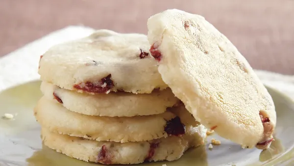 Step1Heat oven to 350°F. In large bowl, mix butter, powdered sugar and ginger with electric mixer on medium speed, or mix with spoon. Stir in flour and cranberries.