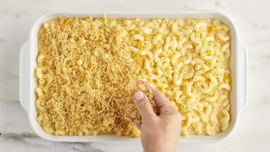 var configuration = {"title":"Gluten-Free Baked Mac and Cheese","introduction":"Looking for a gluten-free recipe that delivers the same mouthwatering flavor as the original? You’ll want to whip up this tasty meal. Super cheesy and topped with crunchy, buttery bread crumbs, this Gluten-Free Baked Mac and Cheese delivers everything you love about the classic comfort dish—just without the gluten! And with a quick prep and bake time, you can have this delicious dinner on the table in just one hour.","servingSize":"1 Cup","image":{"small":{"media":"(min-width: 0px)","src":"https://mojo.generalmills.com/api/public/content/T3smVlMG8kyNxxRkduE9hA_webp_base.webp?v=142ec225\u0026t=e724eca7b3c24a8aaa6e089ed9e611fd"},"medium":{"media":"(min-width: 500px)","src":"https://mojo.generalmills.com/api/public/content/T3smVlMG8kyNxxRkduE9hA_webp_base.webp?v=142ec225\u0026t=191ddcab8d1c415fa10fa00a14351227"},"large":{"media":"(min-width: 767px)","src":"https://mojo.generalmills.com/api/public/content/T3smVlMG8kyNxxRkduE9hA_webp_base.webp?v=142ec225\u0026t=191ddcab8d1c415fa10fa00a14351227"},"alt":"Gluten-Free Baked Mac and Cheese"},"contributor":{"label":"By","name":"Betty Crocker Kitchens","profileUrl":"/about-us","displayDate":{"label":"Updated","date":"Oct 27, 2021"}},"ingredientGroups":[{"ingredients":[{"quantity":"1","description":"package (12 oz) uncooked gluten-free (corn and rice blend or corn, rice and quinoa blend) elbow macaroni (3 1/2 cups)"},{"quantity":"2","description":"cans (12 oz each) evaporated milk"},{"quantity":"1","description":"package (8 oz) cream cheese, cubed and softened"},{"quantity":"1","description":"teaspoon salt"},{"quantity":"1/2","description":"teaspoon pepper"},{"quantity":"1/2","description":"teaspoon ground mustard"},{"quantity":"4","description":"cups shredded sharp cheddar cheese (1 lb)"},{"quantity":"2","description":"eggs, slightly beaten"},{"quantity":"1","description":"cup gluten-free plain panko bread crumbs"},{"quantity":"1/4","description":"cup shredded Parmesan cheese (1 oz)"},{"quantity":"4","description":"tablespoons butter, melted"}]}],"steps":[{"description":"Heat oven to 350°F. Spray 13x9-inch (3-quart) baking dish with cooking spray. In 4-quart saucepan, cook macaroni as directed on package; drain. Rinse under cold water; drain.","stepShotImageUrl":"//mojo.generalmills.com/api/public/content/fvro0sTZnE6YLZcRugSrwA_webp_base.webp?v=81c1372e\u0026t=51a43a57af4046789e5a7f20567b1195"},{"description":"In same saucepan, place milk and heat to a simmer over medium heat. With whisk, beat cream cheese, salt, pepper and ground mustard into milk, until cream cheese melts. Remove from heat; stir macaroni into sauce. Stir in cheddar cheese, then stir in eggs. Pour into baking dish. ","stepShotImageUrl":"//mojo.generalmills.com/api/public/content/XF3fbOaEnEqbho7D_qLiXw_webp_base.webp?v=6414774b\u0026t=51a43a57af4046789e5a7f20567b1195"},{"description":"In small bowl, mix bread crumbs, Parmesan cheese and melted butter; stir until combined. Sprinkle over macaroni mixture.","stepShotImageUrl":"//mojo.generalmills.com/api/public/content/aSFWLLH2TkicQXYG1M-ZLw_webp_base.webp?v=66329170\u0026t=51a43a57af4046789e5a7f20567b1195"},{"description":"Bake uncovered 28 to 33 minutes or until topping is golden brown and mixture is hot (at least 165°F in center)."}],"tips":[{"title":"","description":"Rinsing the cooked gluten-free macaroni under cold water helps stop the cooking, separates the pieces of pasta and prevents your gluten-free baked macaroni and cheese from becoming gummy.","category":"Techniques","tipShots":[]},{"title":"","description":"Be sure to beat the cream cheese into the milk until completely smooth to avoid lumps in your finished gluten-free mac and cheese casserole.","category":"Techniques","tipShots":[]},{"title":"","description":"This Gluten-Free Baked Mac and Cheese recipe was developed using gluten-free macaroni made from blends of corn and rice flours and corn, rice and quinoa flours. It was not tested with lentil-, exclusively quinoa- or exclusively brown rice-based types of gluten-free macaroni.","category":"Recipe/Ingredient Facts","tipShots":[]},{"title":"","description":"\u003cb\u003eCooking Gluten Free?\u003c/b\u003e Always read labels to make sure \u003ci\u003eeach\u003c/i\u003e recipe ingredient is gluten free. Products and ingredient sources can change.","category":"Health","tipShots":[]},{"title":"","description":"Kitchen Tested: 8/2021","category":"Kitchen Tested","tipShots":[]}],"kitchenTips":[{"title":"","description":"Rinsing the cooked gluten-free macaroni under cold water helps stop the cooking, separates the pieces of pasta and prevents your gluten-free baked macaroni and cheese from becoming gummy.","category":"Techniques","tipShots":[]},{"title":"","description":"Be sure to beat the cream cheese into the milk until completely smooth to avoid lumps in your finished gluten-free mac and cheese casserole.","category":"Techniques","tipShots":[]},{"title":"","description":"This Gluten-Free Baked Mac and Cheese recipe was developed using gluten-free macaroni made from blends of corn and rice flours and corn, rice and quinoa flours. It was not tested with lentil-, exclusively quinoa- or exclusively brown rice-based types of gluten-free macaroni.","category":"Recipe/Ingredient Facts","tipShots":[]},{"title":"","description":"\u003cb\u003eCooking Gluten Free?\u003c/b\u003e Always read labels to make sure \u003ci\u003eeach\u003c/i\u003e recipe ingredient is gluten free. Products and ingredient sources can change.","category":"Health","tipShots":[]}],"additionalContent":[],"faq":[],"tipCategories":[{"categoryName":"Kitchen Tested","heading":"More About This Recipe","cssClass":"recipePartStory","expandOnInit":false,"expandText":"More +","collapseText":"Less -","expandEventName":"","collapseEventName":"","image":"","tips":[{"title":"","description":"Kitchen Tested: 8/2021","category":"Kitchen Tested","tipShots":[]}],"isExpandable":false}],"nutritio