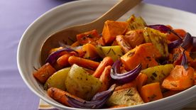 Heat oven to 425°F. In medium bowl, toss Potato Filling ingredients, coating pieces evenly. Arrange on ungreased large cookie sheet. Bake 25 minutes; stir. Bake 15 to 20 minutes longer or until golden brown and crispy.