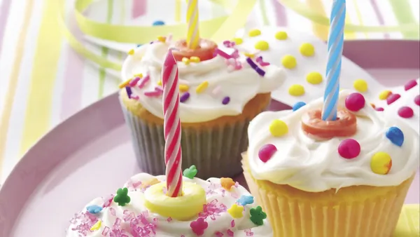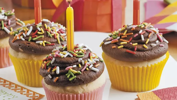 Step1Heat oven to 350°F. Place paper baking cup in each of 24 regular-size muffin cups. In large bowl, beat cake mixes, butter, water, vanilla and eggs with electric mixer on low speed 30 seconds, then on medium speed 2 minutes, scraping bowl occasionally. Divide batter evenly among muffin cups, filling each three-fourths full.