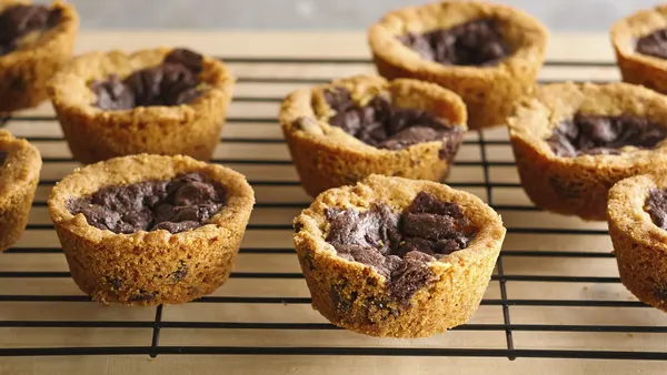 Step2Bake 20 to 25 minutes or until toothpick inserted in center comes out clean. Cool 5 minutes; remove from pan to cooling rack. Cool completely, about 30 minutes.