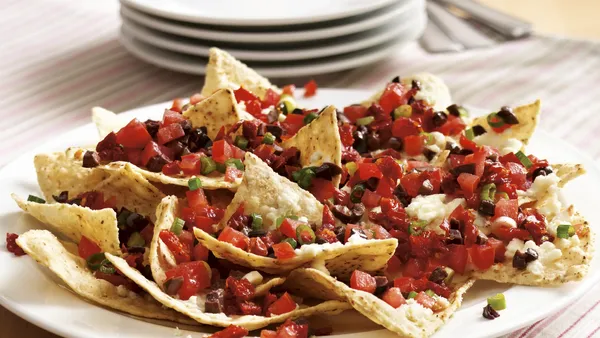 Here's a snack that couldn't be simpler! Purchased hummus and pita chips make tasty Mediterranean nachos in 20 minutes.