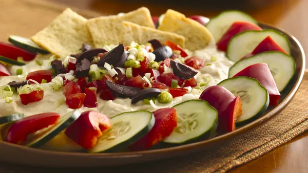- 1 container (8 oz) roasted red pepper hummus