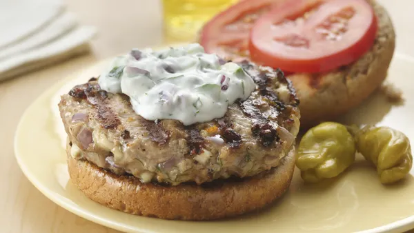Seasoned with oregano and topped with a creamy cucumber sauce, turkey burgers capture the great taste of gyros.