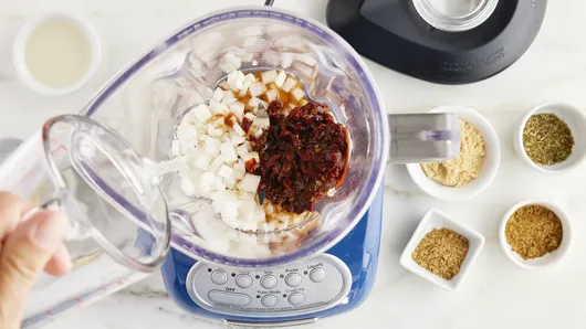 In blender, place onion, chipotle chiles, water, garlic, brown sugar, vinegar, coriander, cumin, salt and oregano. Cover and blend 60 to 90 seconds, stopping to scrape down sides of blender with spatula as needed, until smooth.