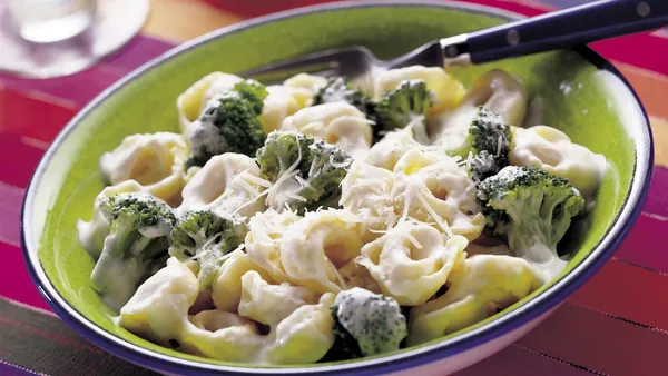 Step1Cook tortellini and broccoli as directed on tortellini package. Drain; return tortellini and broccoli to saucepan.