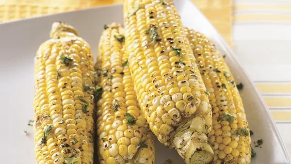 Savor freshly grilled corn on the cob drizzled with melted butter and sprinkled with fresh herbs. Yum.