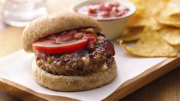 Step1Heat gas or charcoal grill. In large bowl, mix turkey, bread crumbs and chiles. Shape mixture into 8 patties, about 1/4 inch thick.