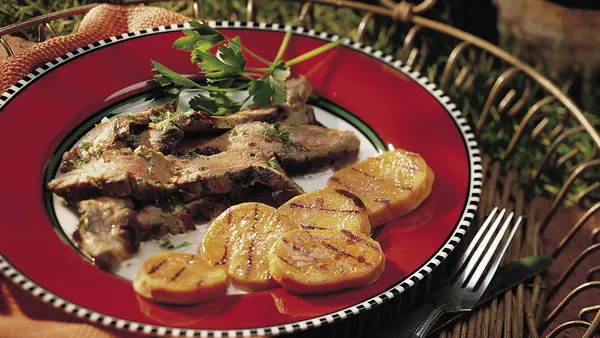Step4Cover and grill beef over medium heat 12 to 14 minutes for medium doneness (160°F), brushing occasionally with marinade and turning once. Add nectarines to grill for last 5 minutes of grilling, turning once and brushing frequently with marinade. Discard any remaining marinade. Cut beef diagonally across grain. Serve with nectarines.