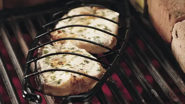 Step3Heat coals or gas grill for direct heat. Remove fish from marinade; reserve marinade. Cover and grill fish over medium heat 15 to 20 minutes, brushing 2 or 3 times with marinade and turning once, until fish flakes easily with fork. Discard any remaining marinade. Serve fish with salsa.