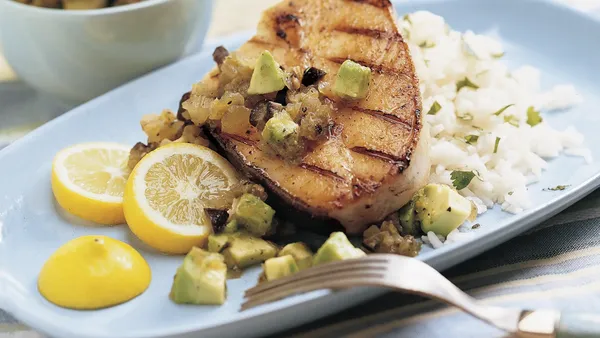 Look out, taste buds! Marinated with a spicy attitude, these fish steaks are grilled and topped with a zesty salsa.