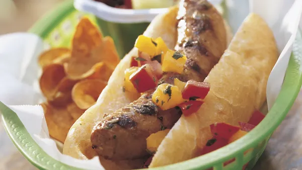 Go for grilled sausages Italian style, with lots of onion, garlic, peppers and olives.
