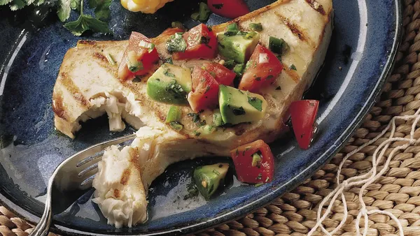 - 4 halibut or tuna steaks, about 1 inch thick (about 2 pounds)