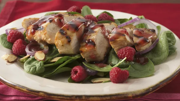 In the mood for a little olé? Strawberries, mango, avocado, cilantro and an alcohol-free margarita dressing blend with tender sliced chicken breasts and fresh greens for a simple Southwest-style salad.