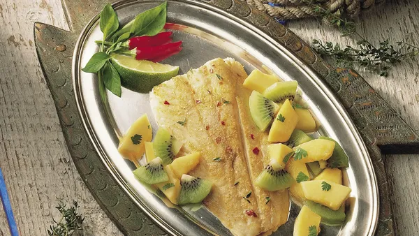 Betty Crocker's Heart Healthy Cookbook shares a recipe! Melt-in-your-mouth swordfish steaks are the perfect base for this fresh and fruity salsa.