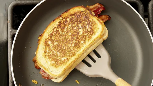 Grilled cheese goes gourmet with this elevated take on the classic sandwich. Made with Gruyère, cheddar and American cheeses, this three-cheese grilled cheese sandwich with bacon takes a childhood favorite to new, delicious levels.