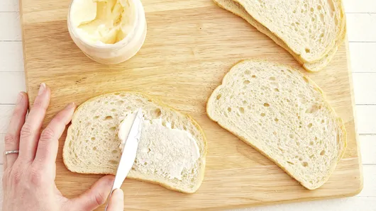 Step1Spread 2 teaspoons mayonnaise on one side of each slice of bread.