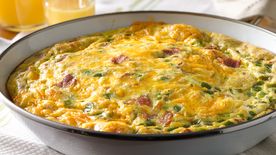 Enjoy this cheesy egg dish that’s made with ham and vegetables - a delicious dinner that’s ready in 20 minutes.