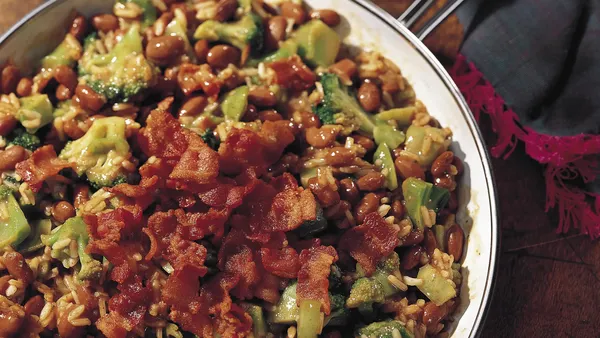 This no-fuss skillet dinner blends packaged rice mix with precooked ham and vegetables.