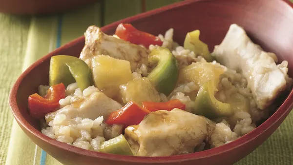 var configuration = {"title":"Gluten-Free Hawaiian Chicken","introduction":"\u003cp\u003eA little sweet and a little savory, this amazing Hawaiian chicken dinner recipe is straight from the pages of our \u003ca href=\u0022https://amzn.to/3C1rIrT\u0022\u003eMake It In One cookbook\u003c/a\u003e. It offers a delightful blend of sweet and savory flavors. Tender chicken breast, vibrant bell peppers, and fresh onions sizzle in the skillet before rice is added and simmered in a creamy coconut milk, chicken broth, and pineapple juice mixture. Juicy pineapple chunks and bright cilantro add a burst of tropical flavor and color, while crunchy cashews and sliced green onions provide a beautiful finish. It\u0027s an adventure in every bite!\u003c/p\u003e\u003cp\u003eMade entirely in one skillet, this perfectly orchestrated Hawaiian chicken recipe ensures each ingredient is added at the optimal time, resulting in the best possible texture and flavor. Cleanup is a breeze with only one pan to wash! This complete one-pot meal includes protein, rice, vegetables, and fruit, eliminating the need to decide on side dishes. For the ultimate experience, serve with crusty warm French bread and melted butter.\u003c/p\u003e","servingSize":"1 Serving ","image":{"small":{"media":"(min-width: 0px)","src":"https://mojo.generalmills.com/api/public/content/OJFS6S3oS8S1AehziaoVKg_webp_base.webp?v=b1359ea8\u0026t=e724eca7b3c24a8aaa6e089ed9e611fd"},"medium":{"media":"(min-width: 500px)","src":"https://mojo.generalmills.com/api/public/content/OJFS6S3oS8S1AehziaoVKg_webp_base.webp?v=b1359ea8\u0026t=191ddcab8d1c415fa10fa00a14351227"},"large":{"media":"(min-width: 767px)","src":"https://mojo.generalmills.com/api/public/content/OJFS6S3oS8S1AehziaoVKg_webp_base.webp?v=b1359ea8\u0026t=191ddcab8d1c415fa10fa00a14351227"},"alt":"Gluten-Free Hawaiian Chicken"},"contributor":{"label":"By","name":"Betty Crocker Kitchens","profileUrl":"/about-us","displayDate":{"label":"Updated","date":"May 7, 2025"}},"ingredientGroups":[{"ingredients":[{"quantity":"1","description":"tablespoon canola oil"},{"quantity":"1","description":"lb boneless skinless chicken breasts, cut into bite-size pieces"},{"quantity":"2","description":"medium bell peppers (any color), coarsely chopped (2 cups)"},{"quantity":"1","description":"medium onion, cut into wedges"},{"quantity":"1","description":"can (8 oz) pineapple chunks in juice, drained, juice reserved"},{"quantity":"1","description":"cup uncooked regular long grain white rice"},{"quantity":"1","description":"cup reduced-fat (lite) coconut milk (from 14-oz can; not cream of coconut)"},{"quantity":"2/3","description":"cup gluten-free chicken broth (from 32-oz carton)"},{"quantity":"3/4","description":"teaspoon salt"},{"quantity":"1","description":"tablespoon chopped fresh cilantro "},{"quantity":"1/2","description":"cup unsalted cashew halves and pieces"},{"quantity":"4","description":"medium green onions, sliced (1/4 cup)"}]}],"steps":[{"description":"In 12-inch skillet, heat oil over medium-high heat. Add chicken, bell peppers and onion wedges; cook, stirring frequently, 3 to 4 minutes or until chicken is no longer pink ."},{"description":"Stir in reserved pineapple juice, rice, coconut milk, chicken broth and salt. Heat to boiling; reduce heat to low. Cover; simmer 20 to 25 minutes, stirring once, or until rice is tender and liquid is absorbed."},{"description":"Stir in pineapple chunks and cilantro; cook until thoroughly heated. Sprinkle with cashews and green onions."}],"tips":[{"title":"","description":"\u003cp\u003eThis recipe has been developed gluten free. Always read labels on product packaging to make sure each recipe ingredient is gluten free. Products and ingredient sources can change.\u003c/p\u003e","category":"Health","tipShots":[]},{"title":"","description":"\u003cp\u003eSo that your chicken comes out moist and tender, in the first step, cook it just until the outside is no longer pink. It will continue to cook as the rice cooks so everything will be done at the same time.\u003c/p\u003e","category":"Method Note","tipShots":[]},{"title":"","description":"\u003cp\u003eCoconut milk is a creamy, rich liquid that adds a subtle, sweet coconut flavor. Often the heavier \u0022cream\u0022 part rises to the top of the can and the watery \u0022milk\u0022 goes to the bottom of the can. Pour the coconut milk into a large measuring cup or medium bowl and whisk together before adding to your dish.\u003c/p\u003e","category":"Recipe/Ingredient Facts","tipShots":[]},{"title":"","description":"\u003cp\u003e2/18/2025\u003c/p\u003e","category":"Kitchen Tested","tipShots":[]}],"kitchenTips":[{"title":"","description":"\u003cp\u003eThis recipe has been developed gluten free. Always read labels on product packaging to make sure each recipe ingredient is gluten free. Products and ingredient sources can change.\u003c/p\u003e","category":"Health","tipShots":[]},{"title":"","description":"\u003cp\u003eSo that your chicken comes out moist and tender, in the first step, cook it just until the outside is no longer pink. It will continue to cook as the rice cooks so everything will be done at the same time.\u003c/p\u003e","category":"Method Note","tipShots":[]},{"title":"","description":"\u003cp\u003eCoconut milk is a creamy, rich liquid that adds a subtle, sweet coconut flavor. Often the heavier \u0022cream\u0022 part rises to the top of the can and the watery \u0022milk\u0022 goes to the bottom of the can. Pour the coconut milk into a large measuring cup or medium bowl and whisk together before adding to your dish.\u003c/p\u003e","category":"Recipe/Ingredient Facts","tipShots":[]}],"additionalContent":[],"faq":[],"tipCategories":[{"categoryName":"Kitchen Tested","heading":"More About This Recipe","cssClass":"recipePartStory","expandOnInit":false,"expandText":"More +","collapseText":"Less -","expandEventName":"","collapseEventName":"","image":"","tips":[{"title":"","description":"\u003cp\u003e2/18/2025\u003c/p\u003e","catego