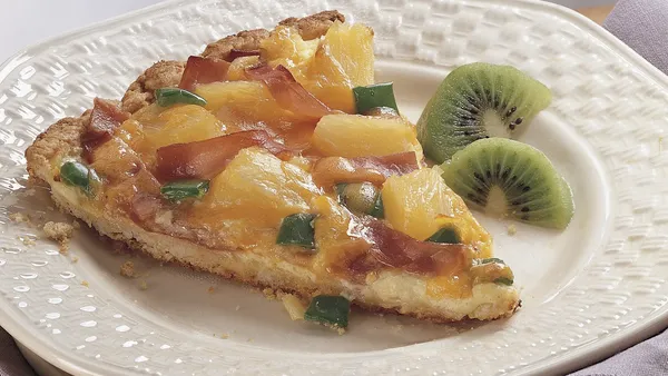 Canadian bacon, pineapple and mozzarella top off homemade pizza that's only a 15-minute prep.