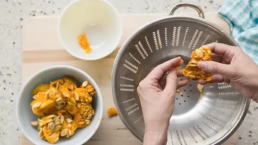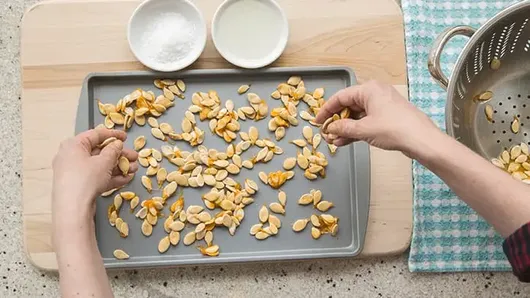 var configuration = {"title":"Homemade Roasted Pumpkin Seeds","introduction":"Carving pumpkins may get all the Halloween glory, but it’s roasting the oh-so-addictive seeds inside that’s become our favorite treat for any time of year. Pumpkin seeds, also called Pepitas, are an amazing snack that you can roast and enjoy in just a few simple steps. You can season your seeds any way you like, opting for a savory flavor profile—think cumin and coriander—or a sweet combination, like cinnamon and ginger. No matter how you season them, roasted pumpkin seeds serve as the perfect blank canvas for the flavors of your choice.","servingSize":"1 Serving","image":{"small":{"media":"(min-width: 0px)","src":"https://mojo.generalmills.com/api/public/content/ikfoIsBJXUeDumuas3oa3g_webp_base.webp?v=c757d49e\u0026t=e724eca7b3c24a8aaa6e089ed9e611fd"},"medium":{"media":"(min-width: 500px)","src":"https://mojo.generalmills.com/api/public/content/ikfoIsBJXUeDumuas3oa3g_webp_base.webp?v=c757d49e\u0026t=191ddcab8d1c415fa10fa00a14351227"},"large":{"media":"(min-width: 767px)","src":"https://mojo.generalmills.com/api/public/content/ikfoIsBJXUeDumuas3oa3g_webp_base.webp?v=c757d49e\u0026t=191ddcab8d1c415fa10fa00a14351227"},"alt":"Homemade Roasted Pumpkin Seeds"},"contributor":{"label":"By","name":"Betty Crocker Kitchens","profileUrl":"/about-us","displayDate":{"label":"Updated","date":"Apr 28, 2020"}},"ingredientGroups":[{"ingredients":[{"quantity":"1","description":"small (6 lb) fresh-well-ripened pumpkin"},{"quantity":"","description":"Nonstick cooking spray"},{"quantity":"1/2","description":"teaspoon salt"}]}],"steps":[{"description":"Heat oven to 350°F. Cut pumpkin in half. Remove the membrane and seeds. Remove most of the pulp from the seeds (leave some pulp on - it adds to the flavor; for the same reason, do not rinse the seeds).","stepShotImageUrl":"//mojo.generalmills.com/api/public/content/DTNuQKo91Uuyq2VCR9qVtQ_webp_base.webp?v=ffad5f34\u0026t=51a43a57af4046789e5a7f20567b1195"},{"description":"Spread seeds in a shallow, jelly roll pan with sides, 15x10x 1 1/2 inches. Spray seeds with cooking spray; sprinkle with salt.","stepShotImageUrl":"//mojo.generalmills.com/api/public/content/1FTvsq-Gn0qdf8M3S2iqCg_webp_base.webp?v=c1d6b56c\u0026t=51a43a57af4046789e5a7f20567b1195"},{"description":"Bake 25 to 30 minutes or until browned; cool. "}],"tips":[{"title":"","description":"If you prefer to use oil instead of cooking spray, use 1 teaspoon olive oil for 1 cup seeds. Continue as directed.","category":"Variation","tipShots":[]},{"title":"","description":"Recipe meets Kitchen Tested criteria. Reviewed as part of SEO improvements Oct. 2019.","category":"Kitchen Tested","tipShots":[]},{"title":"","description":"According to the USDA, pumpkin seeds are full of essential nutrients, particularly magnesium, potassium and zinc. Pepitas are also a phenomenal source of protein—just one cup has over 18 grams.","category":"Recipe/Ingredient Facts","tipShots":[]},{"title":"","description":"The pumpkin type you choose depends on what your grocer may have available at the time. The most common type of pumpkins sold for cooking purposes are referred to, quite logically, as “cooking pumpkins.” These pumpkins—like the Styrian, for example—produce highly flavorful seeds and tend to be smaller than the “carving pumpkins” seen on display around Halloween. Either are fine to use; you’ll only notice a slight variation in the texture and flavor of the seeds.","category":"Recipe/Ingredient Facts","tipShots":[]},{"title":"","description":"If you’re using a larger carving pumpkin, taking off the top might be all you need to do. But for several smaller cooking pumpkins, you’ll want to cut the pumpkin into sections for better access to the seeds.","category":"Recipe/Ingredient Facts","tipShots":[]},{"title":"","description":"An optional step before rinsing and drying your seeds is to boil them in salt water for ten minutes. This makes them extra crispy and also easier to digest.","category":"Techniques","tipShots":[]},{"title":"","description":"Roasting times may vary depending on the size of the seeds. Smaller seeds may take closer to ten minutes, while larger ones may take closer to 30. The best way to check is to take them out when they are lightly browned: pumpkin seeds that are ready to eat will be very crispy and easy to bite into.","category":"Recipe/Ingredient Facts","tipShots":[]},{"title":"","description":"There’s really no wrong way to eat a pumpkin seed! Some people crack the shell and remove the inner seed first, but it’s easy (and tasty!) to eat the seeds whole and enjoy them that way.","category":"Recipe/Ingredient Facts","tipShots":[]},{"title":"Upgrade Your Pumpkin Seeds with These Variations: ","description":"Cinnamon sugar: This recipe for \u003ca href=\u0022https://www.bettycrocker.com/recipes/cinnamon-sugar-pumpkin-seeds/1c2df4cc-46f5-46bd-af3b-a0953c24aa57\u0022 target=\u0022_blank\u0022\u003ecinnamon sugar pumpkin seeds\u003c/a\u003e will satisfy any sweet tooth.\nSalt and vinegar: 1 teaspoon salt and 2-3 tablespoons balsamic vinegar\nParmesan garlic herb: 1/3 cup grated Parmesan cheese, ½ teaspoon garlic powder, ½ teaspoon salt and 2 tablespoons minced fresh rosemary\nTaco: Check out our recipe for \u003ca href=\u0022https://www.bettycrocker.com/recipes/peppy-roasted-pumpkin-seeds/3bad5f5b-d8cc-4989-ba97-f7473f7592ab\u0022 target=\u0022_blank\u0022\u003epeppy roasted pumpkin seeds\u003c/a\u003e for a Tex-Mex twist.\nTruffle chive: 1 teaspoon black truffle salt or oil, 2 tablespoons minced fresh chives and 1/3 cup grated Parmesan cheese\nBuffalo wing: 1 tablespoon melted butter and 2 tablespoons hot sauce Chile lime: ½ teaspoon salt, 1 teaspoon chili powder and 2 tablespoons fresh lime juice\nBrown butter: 2-3 tablespoons browned butter (melt butter in sauce pan over medium-high heat until it bubbles and starts to brown) and 1 teaspoon salt\nJerk: Toss the pumpkin seeds in a batch of ou