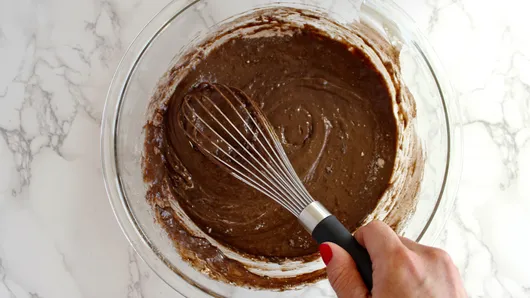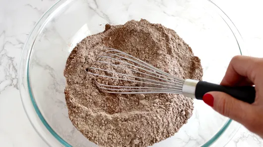 In a large bowl, whisk together the dry cake mix and hot cocoa mix until well blended.
