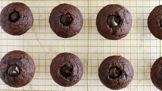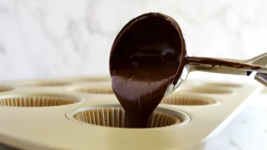 Spoon or pipe about 1 teaspoon of the chocolate ganache into the center of each cupcake.