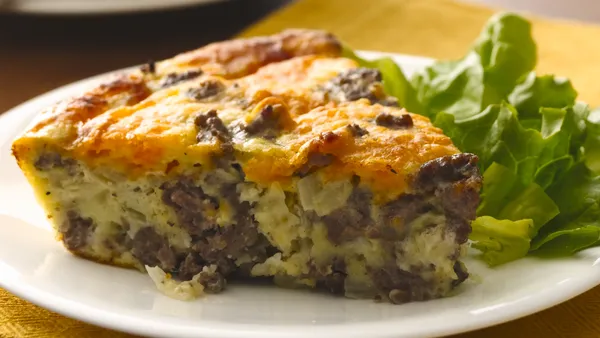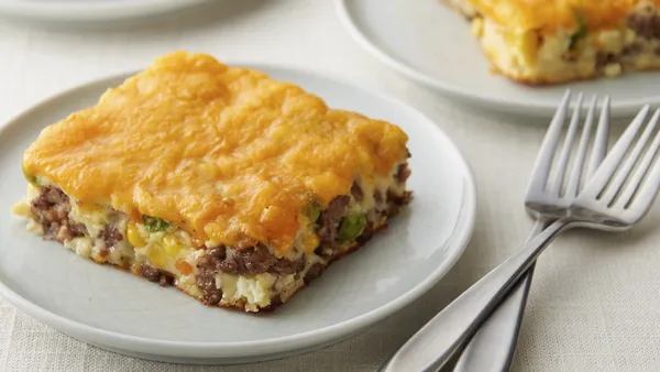 var configuration = {"title":"Impossibly Easy Cheeseburger Pie ","introduction":"\u003cp\u003eExperience the magic of a self-crusting pie with this Impossibly Easy Cheeseburger Pie recipe! This family-favorite dish combines classic cheeseburger flavors with down-to-earth goodness, making it a top-rated choice among home cooks. In just 55 minutes, you can create a comforting and satisfying meal that will have everyone asking for seconds. Get ready to enjoy a crazy easy recipe where a Bisquick™ Original Pancake and Baking Mix mixture forms its own crust over a savory ground beef, onion, and cheddar cheese filling. Customize your pie with your favorite cheeseburger toppings like bacon, avocado, or a California-style lettuce and tomato mix for a truly personalized dining experience. No wonder it’s a top-rated favorite among thousands—yes, thousands—of home cooks!\u003c/p\u003e","servingSize":"1 Serving","image":{"small":{"media":"(min-width: 0px)","src":"https://mojo.generalmills.com/api/public/content/u8dq_e72Q62zB-k1xP2Cow_webp_base.webp?v=586a04fa\u0026t=e724eca7b3c24a8aaa6e089ed9e611fd"},"medium":{"media":"(min-width: 500px)","src":"https://mojo.generalmills.com/api/public/content/u8dq_e72Q62zB-k1xP2Cow_webp_base.webp?v=586a04fa\u0026t=191ddcab8d1c415fa10fa00a14351227"},"large":{"media":"(min-width: 767px)","src":"https://mojo.generalmills.com/api/public/content/u8dq_e72Q62zB-k1xP2Cow_webp_base.webp?v=586a04fa\u0026t=191ddcab8d1c415fa10fa00a14351227"},"alt":"Impossibly Easy Cheeseburger Pie "},"contributor":{"label":"By","name":"Betty Crocker Kitchens","profileUrl":"/about-us","displayDate":{"label":"Updated","date":"Oct 15, 2025"}},"ingredientGroups":[{"ingredients":[{"quantity":"1","description":"lb lean (at least 80%) ground beef"},{"quantity":"1","description":"large onion, chopped (1 cup)"},{"quantity":"1/2","description":"teaspoon salt"},{"quantity":"1","description":"cup shredded cheddar cheese (4 oz)"},{"quantity":"1/2","description":"cup Bisquick™ Original Pancake \u0026 Baking Mix","productLink":"/products/bisquick/bisquick-original"},{"quantity":"1","description":"cup milk"},{"quantity":"2","description":"eggs"},{"quantity":"1","description":"teaspoon vegetable oil"}]}],"steps":[{"description":"Heat oven to 400°F. Spray 9-inch glass pie plate with cooking spray."},{"description":"In 10-inch skillet, cook beef and onion over medium heat 8 to 10 minutes, stirring occasionally, until beef is brown; drain. Stir in salt. Spread in pie plate. Sprinkle with cheese.","stepShotImageUrl":"//mojo.generalmills.com/api/public/content/R3oFEYkZ0UOkNjE9uYpT5g_webp_base.webp?v=002a4b88\u0026t=51a43a57af4046789e5a7f20567b1195"},{"description":"In medium bowl, stir remaining ingredients with fork or wire whisk until blended. Pour into pie plate. ","stepShotImageUrl":"//mojo.generalmills.com/api/public/content/YFx3qX0Wf0qfSGSg6kxREg_webp_base.webp?v=8ad1b601\u0026t=51a43a57af4046789e5a7f20567b1195"},{"description":"Bake 29 to 33 minutes or until knife inserted in center comes out clean. Let stand 10 minutes before serving."}],"tips":[{"title":"","description":"Our cheeseburger pie recipe is a top-rated by thousands of fans. It magically makes its own crust, so it’s oven-ready in just 20 minutes.","category":"Rich Snippet","tipShots":[]},{"title":"","description":"This recipe has been on the Bisquick™ mix box for years, and it is still one of the most-requested Impossibly Easy Pie recipes of all time.","category":"Recipe/Ingredient Facts","tipShots":[]},{"title":"","description":"Let a straight-forward cheeseburger pie be the beginning for a diner-inspired dinner: top the pie with crumbled bacon and sliced avocado, fried onions and mushrooms, a California-style shredded lettuce and tomato, dill pickle chips, or pickled red onions! The sky’s the limit.","category":"Serving Suggestions/Menu","tipShots":[]},{"title":"","description":"Try serving with barbecue sauce, ketchup, or mustard.","category":"Serving Suggestions/Menu","tipShots":[]},{"title":"","description":"Prep and assemble the pie up to 24 hours ahead of baking. Stash covered, in the refrigerator and plan to bake it a 5 to 8 minutes longer or until knife inserted in center comes out clean since it will be chilled.","category":"Do-Ahead","tipShots":[]},{"title":"","description":"Kitchen Tested - 9/2022","category":"Kitchen Tested","tipShots":[]}],"kitchenTips":[{"title":"","description":"This recipe has been on the Bisquick™ mix box for years, and it is still one of the most-requested Impossibly Easy Pie recipes of all time.","category":"Recipe/Ingredient Facts","tipShots":[]},{"title":"","description":"Let a straight-forward cheeseburger pie be the beginning for a diner-inspired dinner: top the pie with crumbled bacon and sliced avocado, fried onions and mushrooms, a California-style shredded lettuce and tomato, dill pickle chips, or pickled red onions! The sky’s the limit.","category":"Serving Suggestions/Menu","tipShots":[]},{"title":"","description":"Try serving with barbecue sauce, ketchup, or mustard.","category":"Serving Suggestions/Menu","tipShots":[]},{"title":"","description":"Prep and assemble the pie up to 24 hours ahead of baking. Stash covered, in the refrigerator and plan to bake it a 5 to 8 minutes longer or until knife inserted in center comes out clean since it will be chilled.","category":"Do-Ahead","tipShots":[]}],"additionalContent":[{"title":"What is Impossibly Easy Cheeseburger Pie?","description":"Our impossible cheeseburger pie is crazy easy, as Bisquick™ Original Pancake and Baking Mix mixed with eggs and milk is poured over cooked ground beef, onions, and cheddar cheese, to form its own crust. Just 20 minutes to the oven.","category":"SEO Content_1","tipShots":[]},{"title":"How Should I Serve Cheeseburger Pie?","description":"What are your favorite cheeseburger toppings? Whatever you love on a cheeseburger can be also used as a topping for our cheeseburger pie recipe! Try crumbled bacon, sli