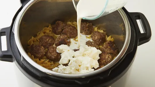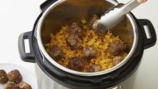 var configuration = {"title":"Instant Pot® Swedish Meatballs","introduction":"Pasta and meatballs, Swedish-style! It’s a luscious, creamy and hearty dish full of warming spices and brightened up with a side of lingonberry preserves and a garnish of chopped fresh dill. While we never tire of this comforting dish, this version is extra special. The Instant Pot®, as it turns out, is a magical pasta pot. Cooking the noodles under pressure doesn’t just turn them silken, it also permeates them with rich, saucy flavor—and that’s only half of what makes this recipe so special. Meatballs cooked in the Instant Pot® have a chance to brown, thanks to the SAUTE function, and they still turn out juicy and tender since they get finished under pressure. Once we discovered this pot’s knack for knocking out 5-star spaghetti and meatballs, we’ve been working through all our favorite versions of this classic combo, which is why we’re so excited about this recipe. We hope you enjoy it as much as we do!","servingSize":"1 1/2 Cups","image":{"small":{"media":"(min-width: 0px)","src":"https://mojo.generalmills.com/api/public/content/19rV8233702wsmnm6Rv4Jw_webp_base.webp?v=5fb515b6\u0026t=e724eca7b3c24a8aaa6e089ed9e611fd"},"medium":{"media":"(min-width: 500px)","src":"https://mojo.generalmills.com/api/public/content/19rV8233702wsmnm6Rv4Jw_webp_base.webp?v=5fb515b6\u0026t=191ddcab8d1c415fa10fa00a14351227"},"large":{"media":"(min-width: 767px)","src":"https://mojo.generalmills.com/api/public/content/19rV8233702wsmnm6Rv4Jw_webp_base.webp?v=5fb515b6\u0026t=191ddcab8d1c415fa10fa00a14351227"},"alt":"Instant Pot® Swedish Meatballs"},"contributor":{"label":"By","name":"Betty Crocker Kitchens","profileUrl":"/about-us","displayDate":{"label":"Updated","date":"Dec 9, 2019"}},"ingredientGroups":[{"ingredients":[{"quantity":"1","description":"lb ground beef (at least 80% lean)"},{"quantity":"1/2","description":"cup Progresso™ plain panko crispy bread crumbs"},{"quantity":"1/2","description":"cup finely chopped onion"},{"quantity":"1","description":"teaspoon salt"},{"quantity":"1/2","description":"teaspoon ground pepper"},{"quantity":"1/2","description":"teaspoon ground nutmeg"},{"quantity":"1/4","description":"teaspoon ground allspice"},{"quantity":"1/4","description":"cup milk"},{"quantity":"1","description":"egg"},{"quantity":"1","description":"tablespoon vegetable oil"},{"quantity":"1","description":"carton (32 oz) Progresso™ chicken broth"},{"quantity":"1","description":"bag (12 oz) uncooked wide egg noodles"},{"quantity":"1/2","description":"cup heavy whipping cream"},{"quantity":"4","description":"oz (from 8-oz package) cream cheese, softened and cubed"},{"quantity":"2","description":"tablespoons chopped fresh dill weed"},{"quantity":"","description":"Lingonberry preserves, if desired"}]}],"steps":[{"description":"In large bowl, mix beef, bread crumbs, onion, 3/4 teaspoon of the salt, 1/4 teaspoon of the pepper, the nutmeg, allspice, milk and egg. Shape mixture into 20 (1 1/2-inch) meatballs.","stepShotImageUrl":"//mojo.generalmills.com/api/public/content/Iffa4uoh4EKE-rRDR8EgjQ_webp_base.webp?v=38536fc5\u0026t=51a43a57af4046789e5a7f20567b1195"},{"description":"On 6-quart Instant Pot®, select SAUTE; adjust to normal. Heat oil in insert until very hot. Add meatballs; cook 4 to 5 minutes without moving, until meatballs release easily from bottom of insert. Turn; cook 2 to 3 minutes or until browned on second side. Turn one more time; cook 2 to 3 minutes on third side, until browned. Select CANCEL. Using slotted spoon or tongs, transfer meatballs to plate.","stepShotImageUrl":"//mojo.generalmills.com/api/public/content/uqH3D4tcb0KNLsEGaor4YA_webp_base.webp?v=e41bae4c\u0026t=51a43a57af4046789e5a7f20567b1195"},{"description":"Stir broth, remaining 1/4 teaspoon salt and remaining 1/4 teaspoon pepper into meatball drippings in insert. Stir mixture to loosen browned bits from bottom of insert. Stir in egg noodles."},{"description":"Place meatballs evenly over egg noodle mixture. Secure lid; set pressure valve to SEALING. Select MANUAL; cook on high pressure 8 minutes. Select CANCEL. Set pressure valve to VENTING to quick-release pressure.","stepShotImageUrl":"//mojo.generalmills.com/api/public/content/RctfXAD7Bku9Y6PAUdWr8Q_webp_base.webp?v=d56059ff\u0026t=51a43a57af4046789e5a7f20567b1195"},{"description":"Gently stir whipping cream and cream cheese into mixture 1 to 2 minutes or until cheese is melted and egg noodles are completely separated. Noodles will appear to be stuck together but will separate while stirring. Let stand 10 minutes. Garnish with dill; serve with preserves.","stepShotImageUrl":"//mojo.generalmills.com/api/public/content/K5IRq1VcREerbt4L7Ve8nQ_webp_base.webp?v=332eb9be\u0026t=51a43a57af4046789e5a7f20567b1195"}],"tips":[{"title":"","description":"When browning the meatballs, it’s important to allow them to cook without stirring them at all. If you try to turn them too early, they will stick to the insert and break apart. To see if they’re ready to turn, use your tongs to gently but firmly lift them off the surface of the insert. If they release, they’re ready to turn.","category":"Recipe/Ingredient Facts","tipShots":[]},{"title":"","description":"The sauce will thicken slightly as it stands after cooking.","category":"Recipe/Ingredient Facts","tipShots":[]},{"title":"","description":"For added richness, try serving this dish garnished with a dollop of sour cream.","category":"Presentation/Garnish","tipShots":[]},{"title":"","description":"Adding fresh dill as a garnish gives the dish a fresh and very Scandinavian touch—don’t miss out.","category":"Presentation/Garnish","tipShots":[]},{"title":"","description":"Lingonberry preserves are a sweet-tart condiment often used in both savory and sweet Scandinavian dishes. It can be found in the jelly-and-jam section of the grocery store. Cranberry sauce can be substituted for the lingonberry preserves, if desired.","category":"Substit