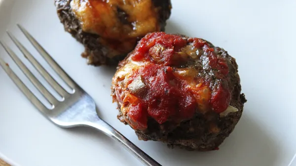 Step1Heat oven to 375°F. Line 15x10x1-inch pan with foil; spray foil with cooking spray. In large bowl, beat eggs. Stir in ground beef, bread crumbs, Parmesan cheese, basil, salt, pepper, garlic and 1/2 cup of the pizza sauce until well combined.