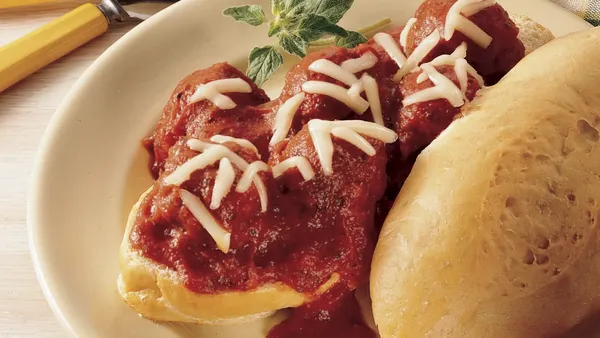 Meatball sandwiches with a twist ooze with melted cheese, making them easy for kids to handle. Using Easy Sheet-Pan Meatballs from your freezer gives you a head start!