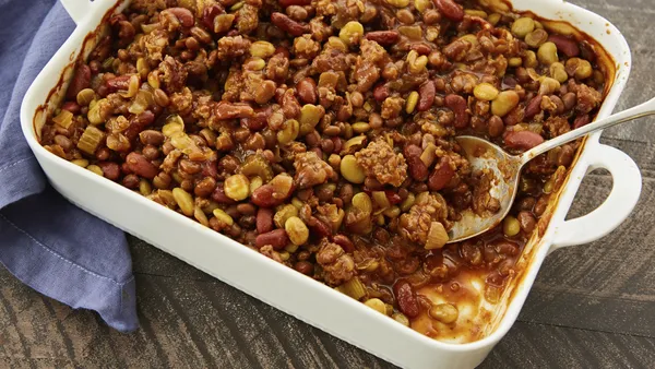 Spicy pork sausage gives this hearty casserole a kick, making it the perfect, flavorful dish to bring to any potluck or large gathering.