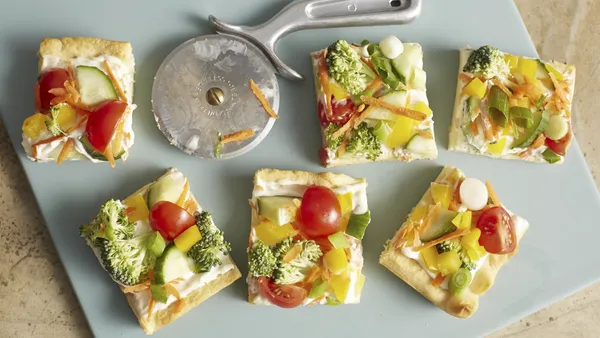 Step2Bake pizza snacks as directed on package. Serve with dip.